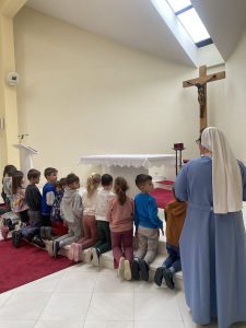 Tijekom korizmenog vremena, naši su predškolci sudjelovali u pobožnosti Križnog puta u samostanskoj kapeli. U mirnom i poticajnom ozračju, prilagođenom njihovoj dobi, kroz jednostavne riječi, kratke molitve i njima bliska objašnjenja nastojali smo približiti Isusov put – put ljubavi, dobrote, žrtve i nade. Svaka postaja bila je prilika za promišljanje i za tiho doživljavanje trenutaka koji nadilaze riječi.