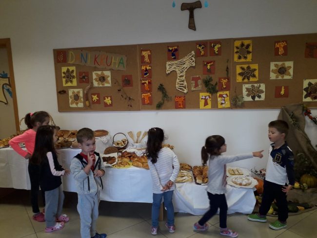 Kruh naš svagdanji… Kroz ovaj mjesec listopada radili smo s djecom razne aktivnosti na temu Jesen. Kako bi ovo godišnje doba mogli doživjeli i u našem vrtiću potrudili su se roditelji koji su nam donijeli jesenske plodove s kojima su odgojiteljice i djeca ukrasile ulaz i kutiće u odgojnim skupinama. Uz vesele boje jeseni, tempera,…