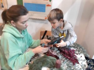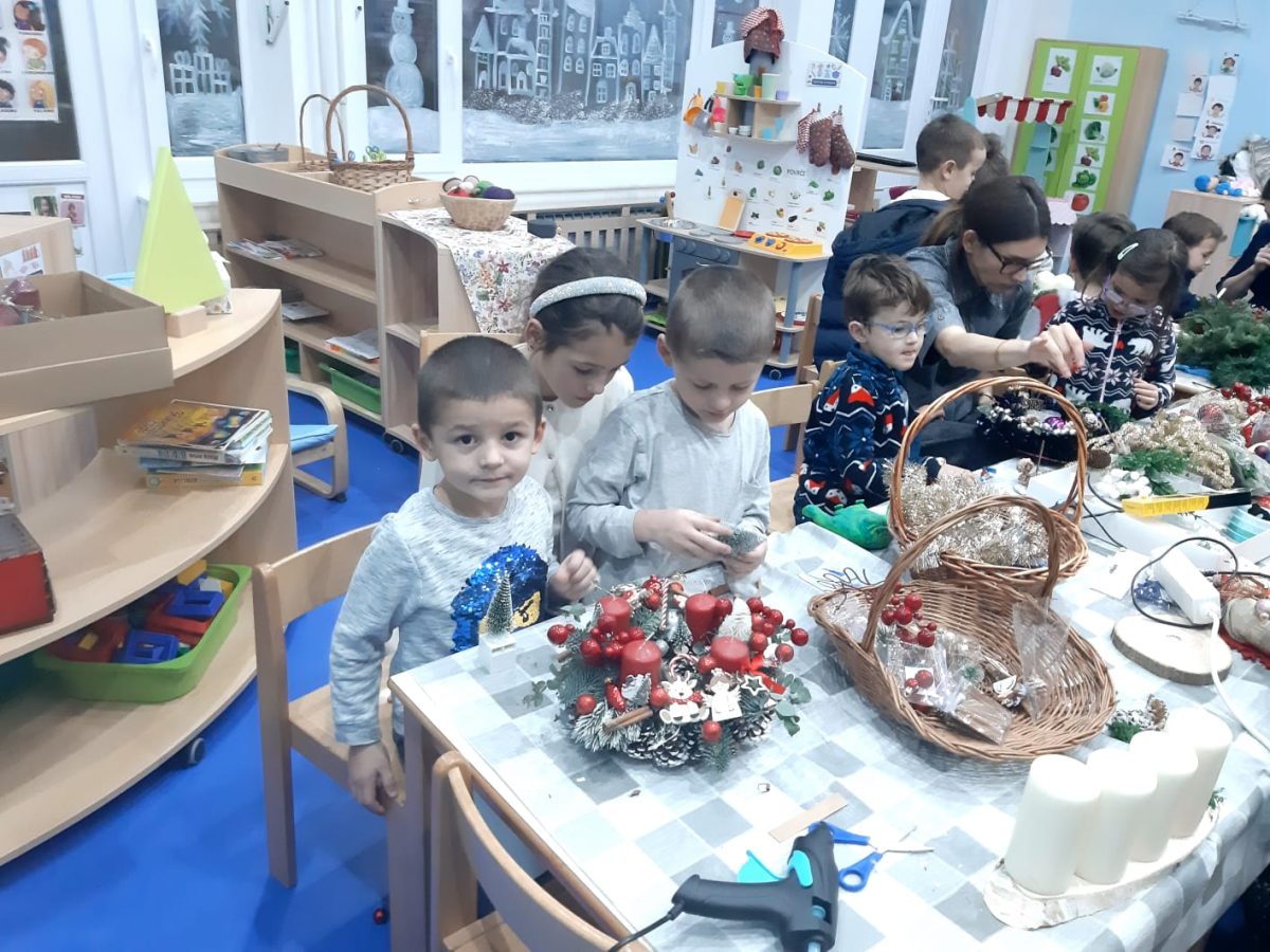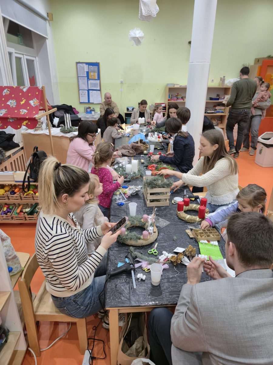 Prošli tjedan u našim vrtićkim skupinama održane su kreativne adventske radionice koje su okupile djecu i roditelje u ugodnom, blagdanskom ozračju. Uz puno veselja, mašte i zajedništva zajedno su izrađivali prekrasne adventske vijence. Roditelji su donijeli raznolike materijale; grančice, svjećice, trakice, ukrase i još mnogo toga. Dijelili su materijale i razmijenjivali ideje. Atmosfera je bila ispunjena smijehom, kreativnošću i toplinom, a neki su se dodatno zasladili i finim božićnim kolačićima.