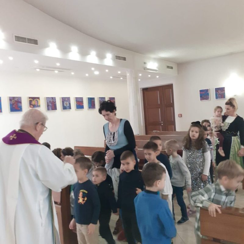 U ozračju početka korizmenog vremena, djeca našeg vrtića sudjelovala su u obredu pepeljanja u samostanskoj kapeli. Zajedno, u molitvi, smo se pripremili za vrijeme promišljanja, dobrih djela i rasta u ljubavi. Obred je predvodio Don Marijan Rodić koji je djeci, na njima razumljiv način, približio značenje pepela kao znaka poniznosti, obraćenja i novog početka.