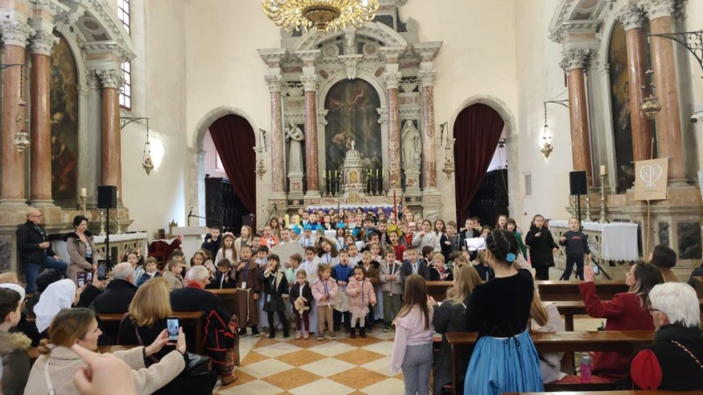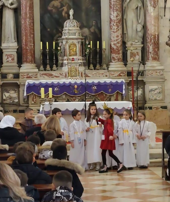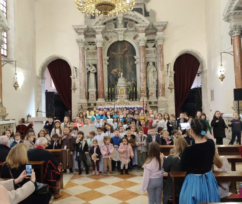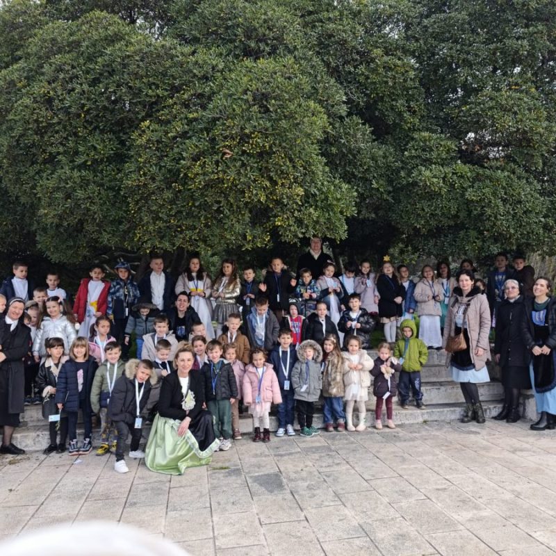 Povodom obilježavanja ove značajne obljetnice, djeca su sudjelovala u prigodnom programu s predstavom „Sveti Franjo – Pjesma stvorova“. Kroz scenski prikaz i recitacije približila su lik svetoga Franje Asiškog i njegovu ljubav prema Bogu, prirodi i svakom stvorenju. Posebno svečan trenutak bio je kada su djeca otpjevala pjesmu „Tko stvori“, uz pratnju s Anke Cvitković, voditeljice s. Mirjane Puljiz i naših odgojiteljica, koje su za ovu prigodu odjenule Arbanaške narodne nošnje, dodatno obogativši doživljaj tradicije i kulturne baštine. Program je protekao u radosnom i ponosnom ozračju, a djeca su pokazala veliku hrabrost i zajedništvo prilikom nastupa.