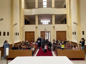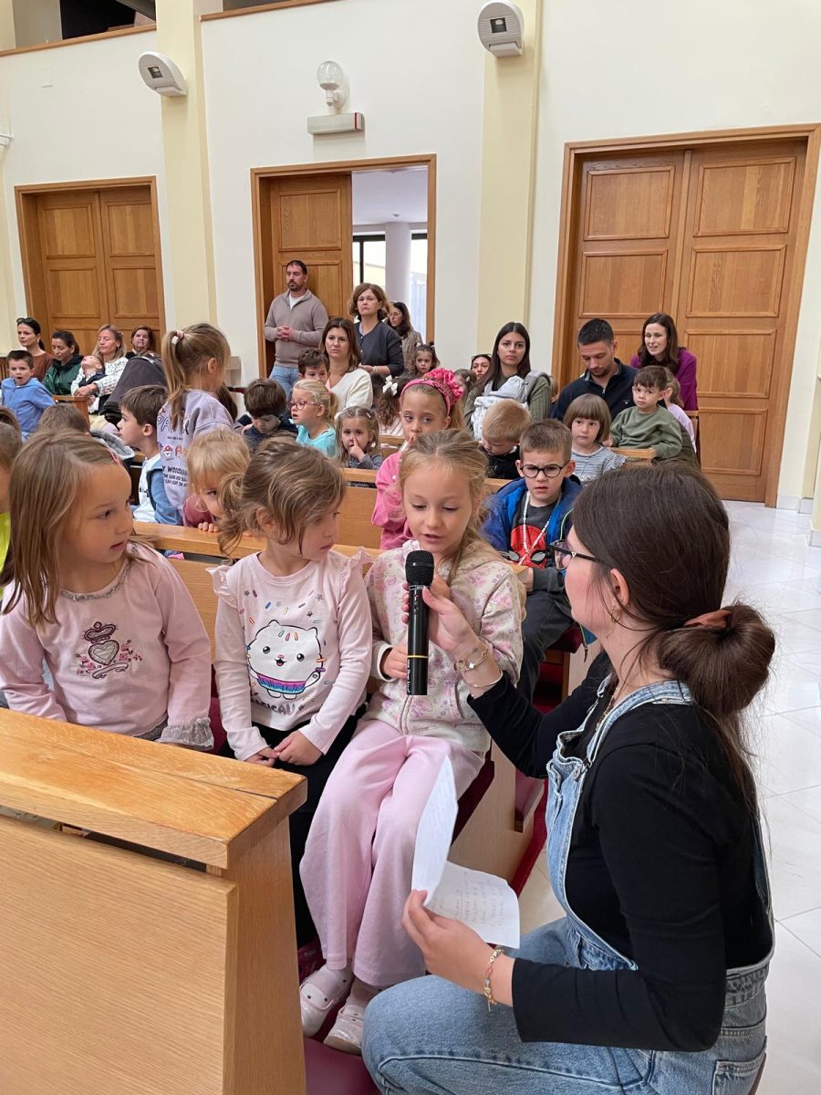 U duhu svjetske inicijative “Djeca mole krunicu za mir”, i u našoj vrtićkoj kapeli na Jordanovcu okupile su se vrtićke skupine zajedno sa svojim odgojiteljicama, roditeljima i djecom kako bi zajedničkom molitvom prikazali svoje nakane za mir u svijetu, u obiteljima i u srcima svih ljudi. Predškolci su s posebnim ponosom i ozbiljnošću predmolili otajstva krunice, dok su nazočni roditelji pedmolili desetice, pridružujući se jednostavnoj, ali dubokoj molitvi djece. Zajedno su činili jedno veliko zajedništvo vjere i ljubavi, u kojem su se riječi molitve stapale s dječjom iskrenošću i radošću. Lijepi broj roditelja odazvao se pozivu te svojom nazočnošću dao podršku djeci i odgojiteljicama, svjedočeći važnost zajedničke molitve i duhovnog odgoja. Ozračje u kapeli bilo je posebno — ispunjeno mirom, radošću i zahvalnošću, dok su dječji glasovi u molitvi odjekivali kao znak nade i povjerenja u Božju ljubav. Ovaj susret u srcima svih prisutnih ponovno nas je podsjetio na snagu molitve i ljepotu zajedništva koje nastaje kada djeca i odrasli zajedno otvaraju svoja srca Bogu.