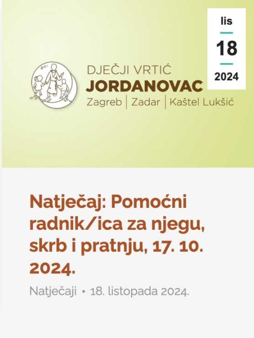 Natječaj: Pomoćni radnik/ica za njegu, skrb i pratnju 17. 10. 2024.