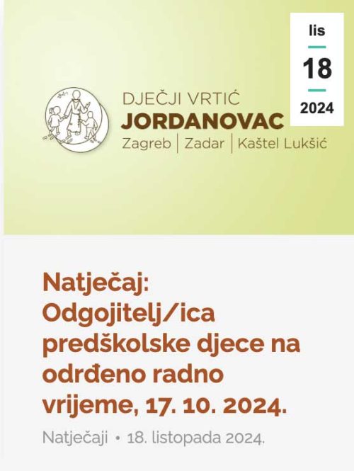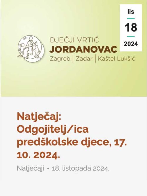 Natječaj: Odgojitelj/ica predškolske djece, 17. 10. 2024.