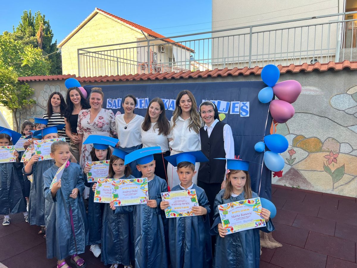 Svaka nova generacija djece nosi nove izazove. Tehnologija napreduje, ponekad se čini da sasvim uspješno pruža zamjenu zaposlenom roditelju, prijatelju, učitelju. Očekivanja su sve manja, a interesi i dječja mašta u posljednje vrijeme i ne rade baš svašta. Upravo zato, na poseban način, možemo zahvaliti Bogu koji nam je dao djecu koja pomiču granice vlastitog uspjeha, koja su željna učiti i raditi. Upravo su to pokazali izvrsnim izvedbama na oproštajnoj priredbi u četvrtak, 6.6.2024. u prostorijama našeg vrtića. Od ranoga jutra, dan je bio posvećen našim predškolcima. Najprije su obilježili sportski dan različitim igrama na dvorištu, a potom je održana i radionica slikanja na platnu. Kasnije su, svečano odjeveni, u prikladnim togama i s kapicama na glavi, pjevali, plesali i recitirali. Za svakog od njih pripremljen je prigodan poklončić te diploma za uspjeh.