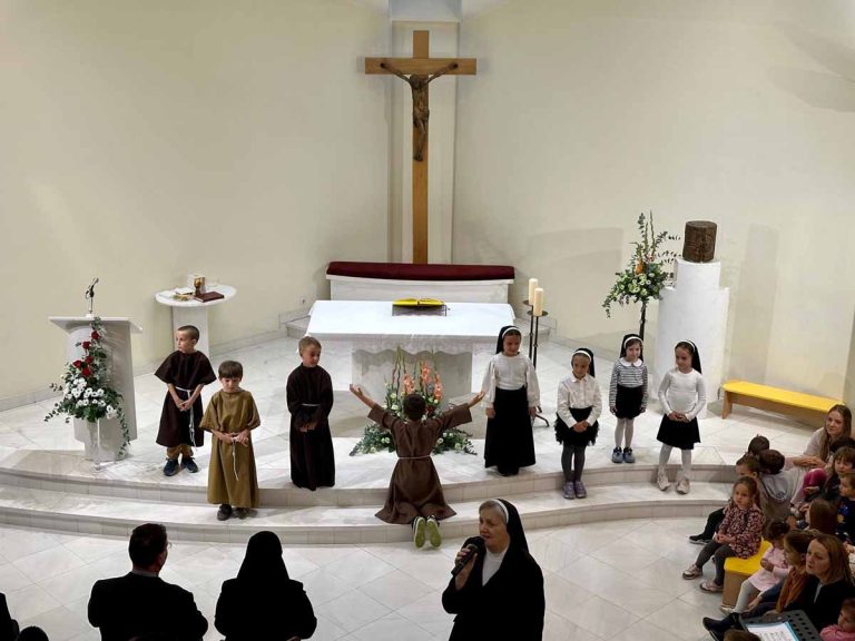 Program se sastojao od kratkog scenskog prikaza iz života sv. Franje, otvorenja izložbe dječjih radova te pjesama u izvedbi dječjeg zbora Dječjeg vrtića Jordanovac koji je animirao i misno slavlje.