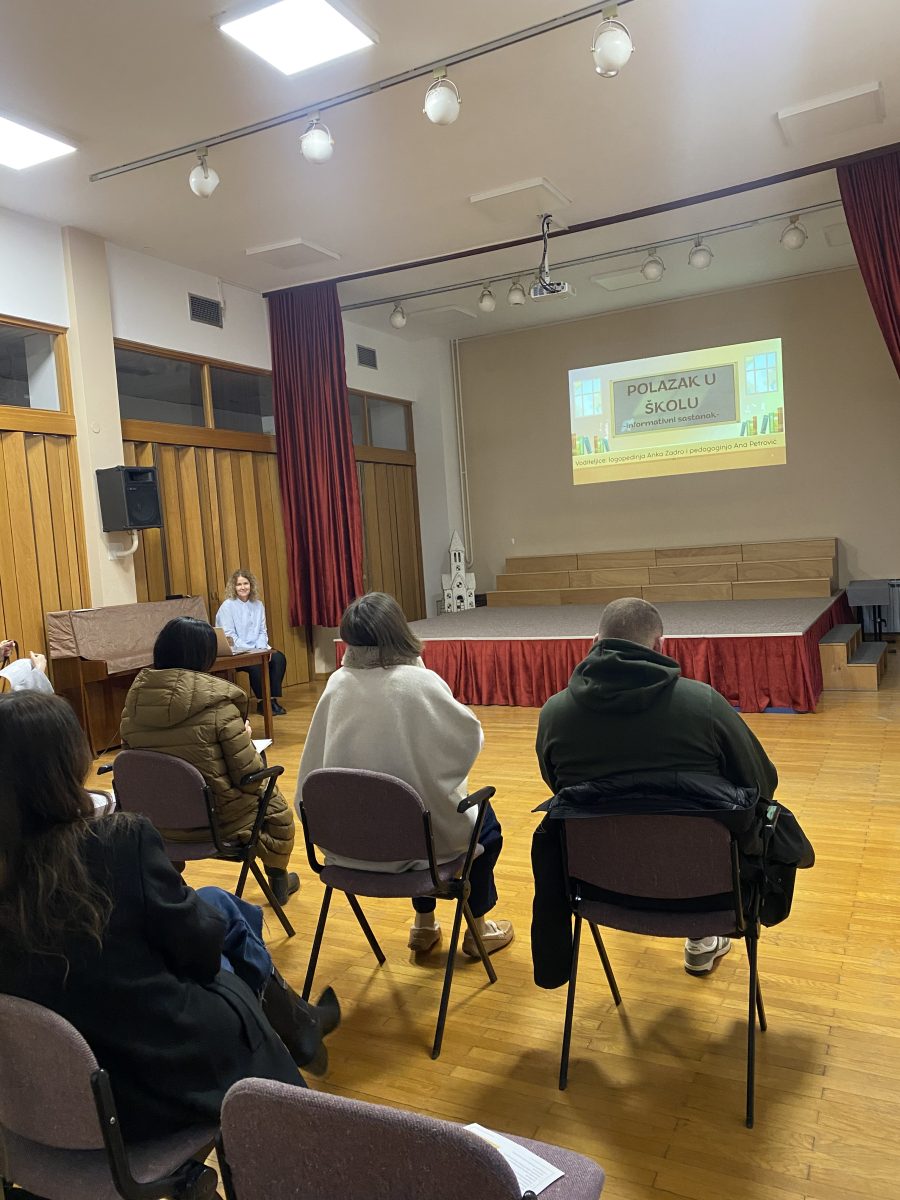 Dana 10. veljače 2026. godine u dvorani našega vrtića održan je sastanak za roditelje predškolaca na temu spremnosti djeteta za polazak u školu. Sastanak su vodile pedagoginja Ana Petrović i logopetkinja Anka Zadro. Tijekom susreta istaknuto je kako školska spremnost obuhvaća cjelokupan razvoj djeteta – od emocionalne zrelosti i socijalnih vještina do jezično- govornih, spoznajnih i grafomotoričkih sposobnosti. Naglašeno je da je važno poticati samostalnost, odgovornost i pozitivnu sliku o sebi, kao i razvijati predčitalačke i predmatematičke vještine kroz igru i svakodnevne aktivnosti. Roditeljima su ponuđene smjernice kako podržati dijete u pripremi te je predstavljeno kako vrtić sustavno priprema djecu da bi spremna i s veseljem zakoračila u školu.
