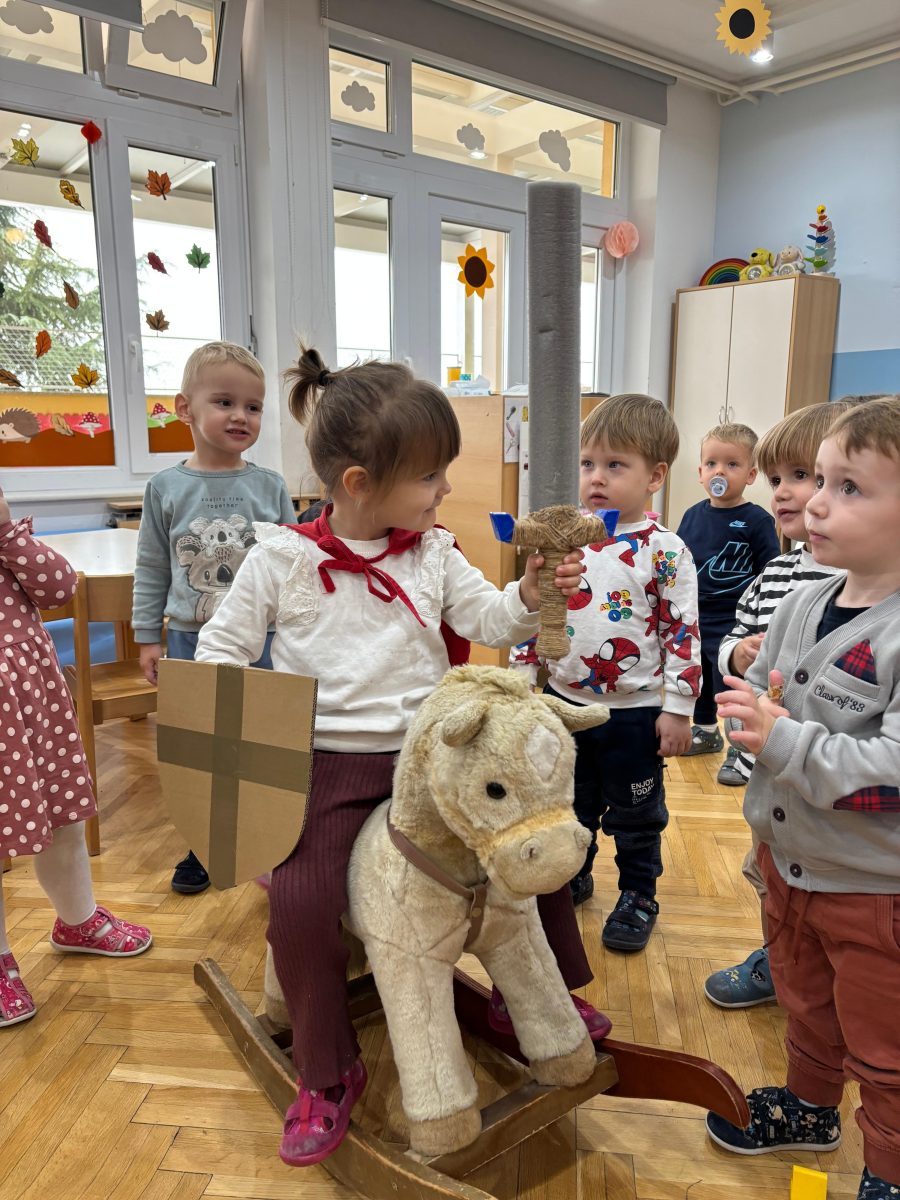 Blagdan svetog Martina proslavili smo u ozračju zajedništva, zahvalnosti i dobrote. Prisjetili smo se priče o vojniku Martinu koji je, vidjevši promrzlog prosjaka, nesebično podijelio s njim svoj plašt. Taj jednostavan, a duboko simboličan čin naučio nas je da prava ljubav prema bližnjemu ne traži bogatstvo, nego srce spremno dijeliti. Djeca su s radošću sudjelovala u prigodnim aktivnostima – izrađivala su lanterne, uz njih su nastali i brojni likovni radovi inspirirani Martinovim životom, pjevale su se pjesme i razgovaralo se o važnosti pomaganja drugima. Cijeli vrtić bio je ispunjen toplinom svjetla i dječjim veseljem. Posebno nas je razveselilo što su i najmlađi sudjelovali u dramatizaciji prikaza priče o svetom Martinu, pokazujući kroz igru i pokret koliko dobrota može ugrijati svako srce. Zajedno smo naučili da i mali činovi dobrote mogu donijeti svjetlo u nečiji život, baš kao što je to učinio i sveti Martin.