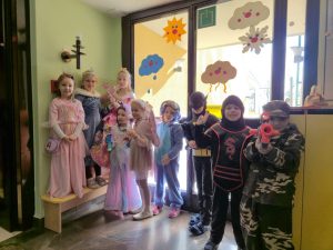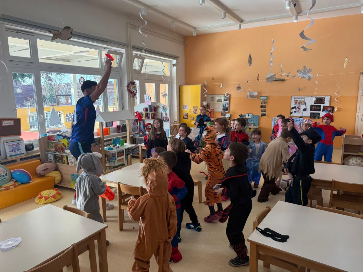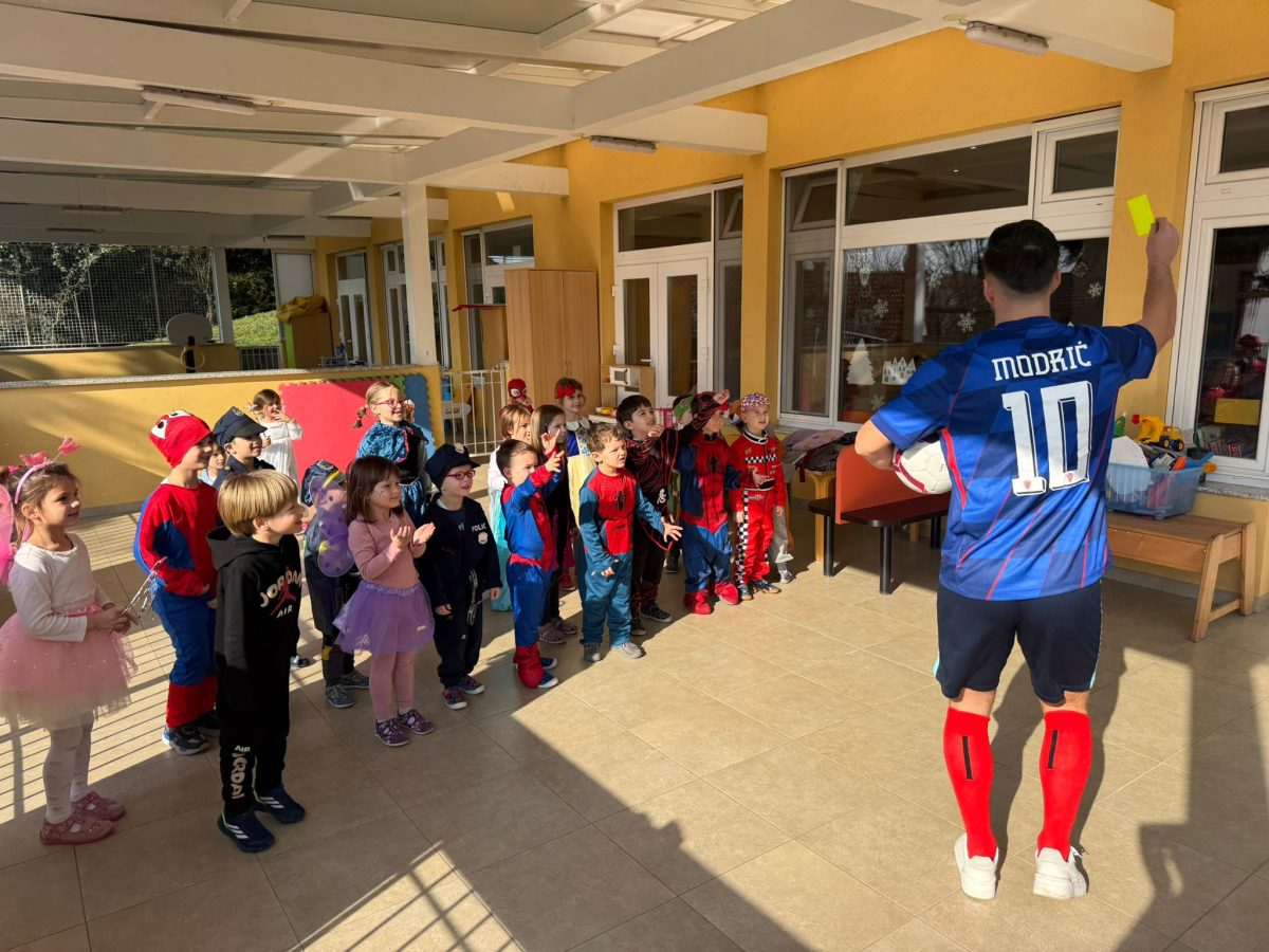 Maškare su i ove godine unijele posebnu radost, šarenilo i veselje u naš dječji vrtić na Jordanovcu. Hodnici su na jedan dan postali čarobno mjesto ispunjeno princezama, superjunacima, životinjama, Titanic i raznim maštovitim likovima. Djeca su s ponosom predstavljala svoje kostime, a u njihovim očima mogla se vidjeti iskrena radost i uzbuđenje. Tijekom prijepodneva organizirane su plesne igre, zajedničko pjevanje i mala modna revija maski. Posebno je bilo lijepo vidjeti zajedništvo i suradnju, kako među djecom, tako i među odgojiteljicama koje su s puno truda i ljubavi doprinijele vedrom ozračju. Vrhunac je bio dolazak gosta iznenađenja koji je dodatno obogatio našu proslavu. Njegov dolazak izazvao je oduševljenje i smijeh, a djeca su ga dočekala pljeskom i pjesmom. Kroz kratki zabavni program i druženje, naš gost je unio još više radosti te potaknuo djecu na sudjelovanje i spontanu igru. Maškare su ponovno pokazale koliko su ovakvi susreti važni za dječji razvoj, potiču maštu, kreativnost, socijalne vještine i osjećaj pripadnosti. Ovaj dan ostat će nam u lijepom sjećanju kao još jedan primjer kako zajedništvom, trudom i otvorenim srcem stvaramo toplo i poticajno okruženje za našu djecu.
