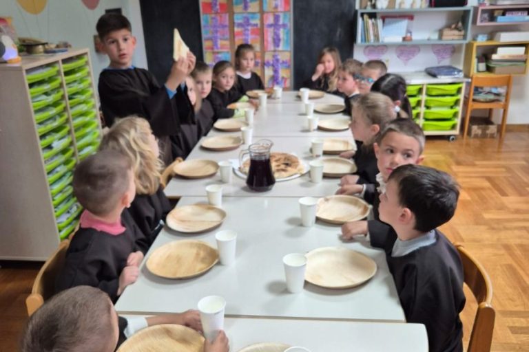 Uoči Uskrsa, djeca svih skupina našeg vrtića – i mališi i veliši – uprizorili su važne događaje Velikog četvrtka: “Pranje nogu” i “Posljednju večeru”. U prigodnim kostimima, s velikim poštovanjem…