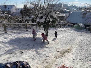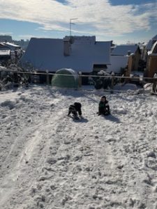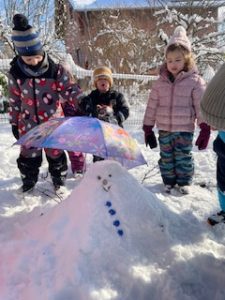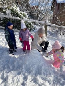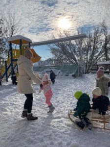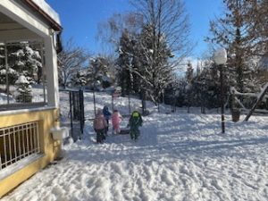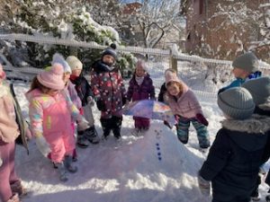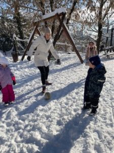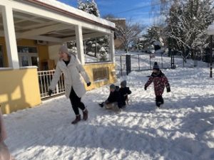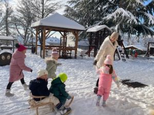 Zimski dan prekriven snijegom donio je posebnu radost u naš vrtić. Bijeli pokrivač pretvorio je dvorište u čarobno mjesto igre, istraživanja i zajedničkog veselja. Djeca su s oduševljenjem čekala izlazak na dvorište gdje su ostavljala prve tragove u snijegu, pravili anđele i smijala se dok su gradila snjegoviće, grudali se, gdje su sa velikim užitkom gađali odrasle. Svaki dodir hladnog snijega budio je znatiželju i poticao dječju maštu. Odgojitelji kao i svi drugi djelatnici u našoj ustanovi su s djecom dijelili to veselje, potičući ih na suradnju, kretanje i međusobno uvažavanje. Posebnu radost donio je povratak staroj tradiciji sanjkanja s vrećama, koji je oduševio djecu i probudio uspomene iz djetinjstva i kod odraslih. Uživanje na snijegu nije bilo samo igra, već i prilika za jačanje odnosa između djece i odgojitelja. U toj jednostavnoj radosti, okruženi zimskom tišinom i dječjim smijehom, stvarala su se iskustva koja ostaju trajna uspomena i temelj radosnog odrastanja.